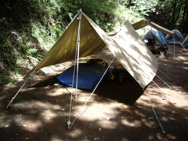 強い日差しを遮ってくれたり、雨を遮ってくれたりするタープの存在は必須です。