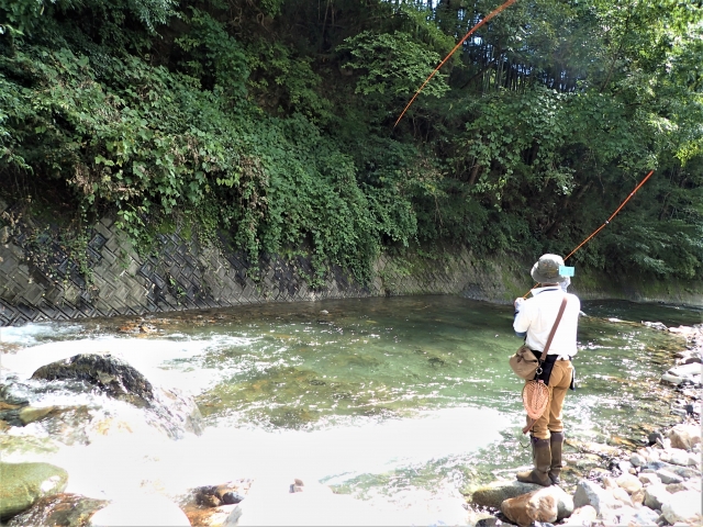 大自然の中で、ルアーやフライを使用してトラウト類の魚を狙います。